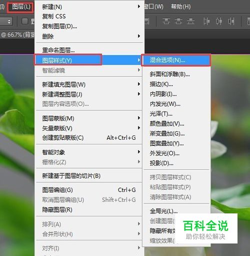 在这个“背景拷贝”图层,点击菜单【图层---图层样式---混合选项】,在弹出的图层样式对话框的“混合选项:自定”,混合模式选择”叠加“,点击确定。