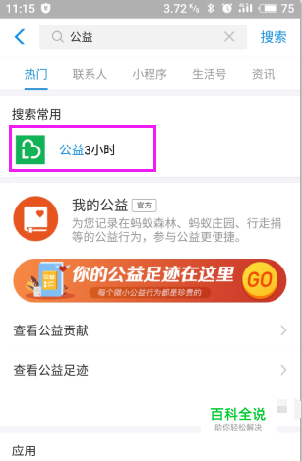 初次使用,支付宝搜索公益,就能找到公益三小时了,点进去