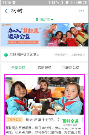 可以看到,有志愿服务和互联网公益,我们现在首页默认的互联网公益看看