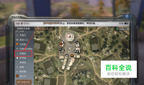进入到【市中心】后,接着打开小地图,之后确定【武器店】所在的位置。