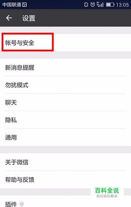 在设置页面中,我们在该页面的顶端可以看到“账号与安全”选项,我们点击进入该功能设置项;