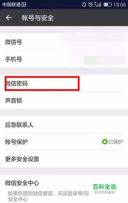 进入该页面后,我们找到“微信密码”设置项并选择该项;