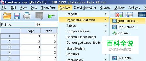 打开数据以后,在菜单栏上执行:analyse---descriptive statistics---frequencies
