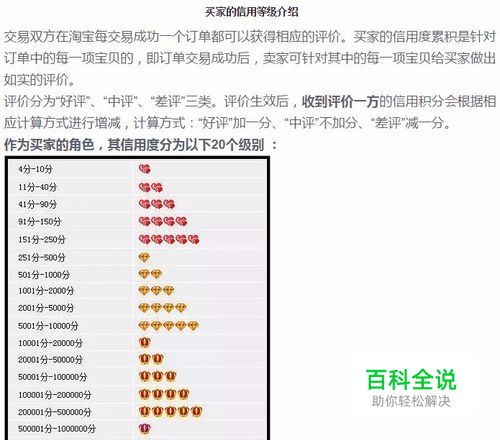 买家在淘宝购买商品后得到卖家(商家)的好评可以获得信用积分,累积251分为一钻(膜拜),1个商品+1好评=1分,5商品+5好评=5分(买卖双方每个月好评超5个不记分)