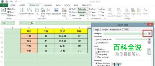 打开print title,会让你选择你的抬头(标题)的区域,你自己按图片所示,选中你要每页打印的标题