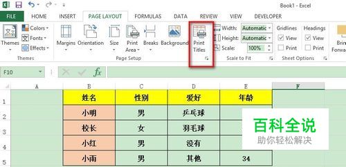 打开excel2013后,找到page layout选项,然后在下面找到print title
