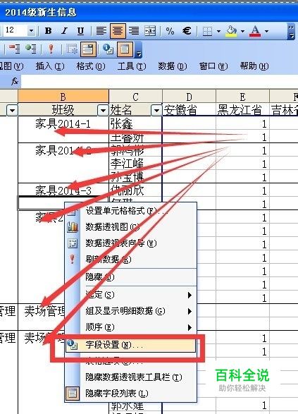 如果要取消隐藏,点击右键后发现没有”取消隐藏"命令。可以右键点击任意的行字段,然后选择“字段设置”命令。