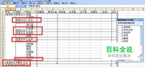 在”班级"行字段中也可选择任意的汇总项目。