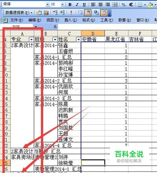 之前被隐藏的汇总项目都再次显示出来了