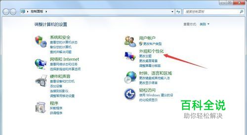 进入控制面板之后,我们可以调整计算机的设置,点击“外观和个性化”,如图所示。