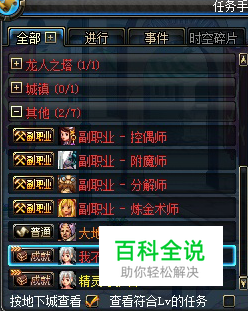 玩家达到一定等级以后,会触发副职业任务,副职业有四种:控偶师、附魔师、分解师和炼金术师。