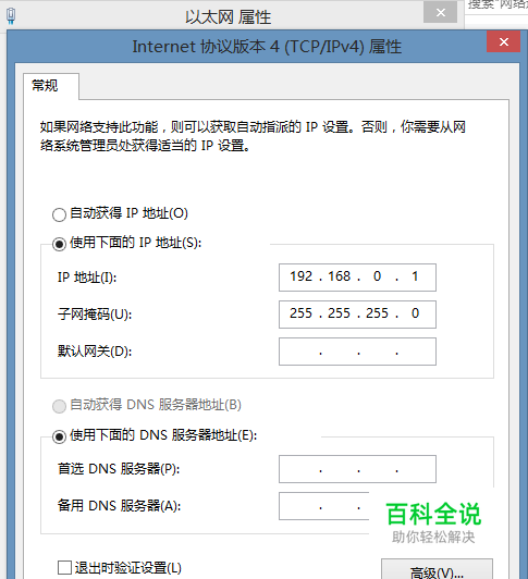 设置本地连接使用固定IP地址。(也可以设置为自动获取IP地址,设为固定的只是在寻找树莓派IP的时候更直观)