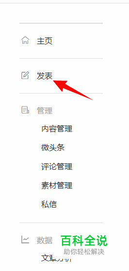 进入到自己的主页面。在左边可以看到一个“发表”的选项。