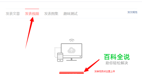 上传视频的步骤是一样的。就是把发表文章改为点旁边的发表视频。