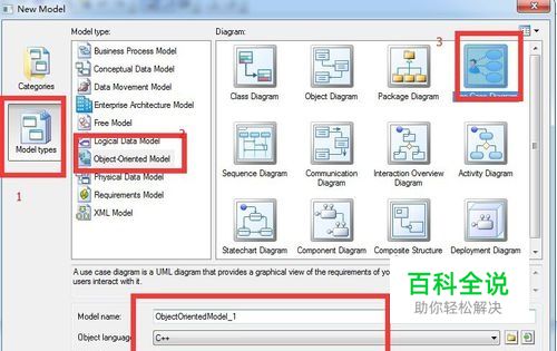 首先新建一个用例的模型,怎么建看下图的1234步,一切0k我选用的是C++语言,用例与语言的关系不是很大。