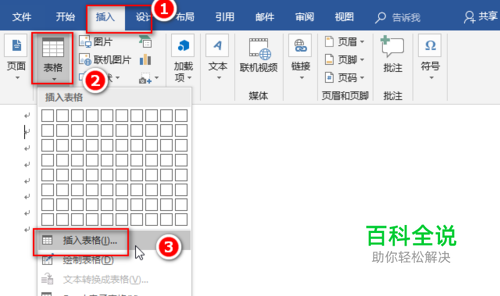首先切换到“插入”菜单下,点击“表格”选项下的“插入表格”。