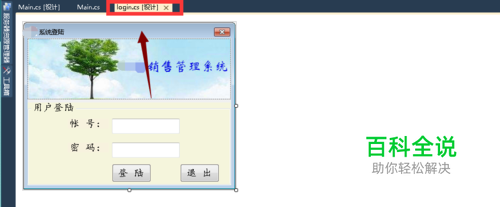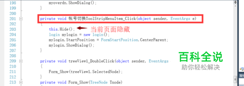 在“帐号切换”按钮上双击或者找到其单击的事件,点进去编写按钮被单击时的事件代码。