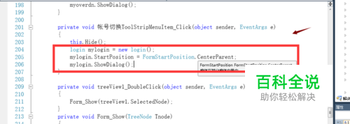 调用登录界面,并显示在当前屏幕的中间。代码: login mylogin = new login(); mylogin.StartPosition = FormStartPosition.CenterParent; mylogin.ShowDialog();