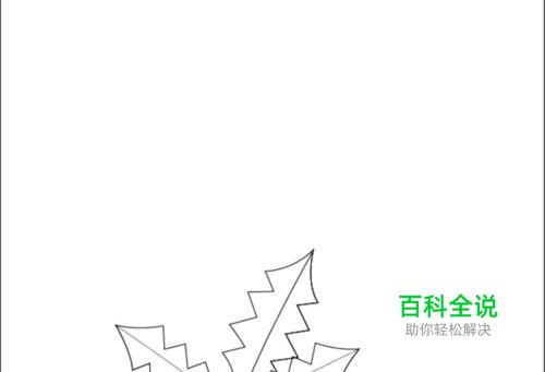 使用钢笔画出小花的三片大叶子,每一片都不相同,把叶子上面的转折边缘一一绘制出来。