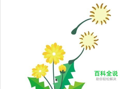 继续填充飞翔的小花的路径,用黄色填充小花的圆形花心,用棕色填充周围的小花丝,用绿色填充花的枝干,完成卡通小花图片设计。