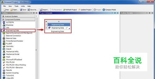 新建一个Engineering Data项目。找到Toobox的Component Systems栏下的Engineering Data,双击改选项或者直接将其拖到Project Schematic(项目管理区)即可。
