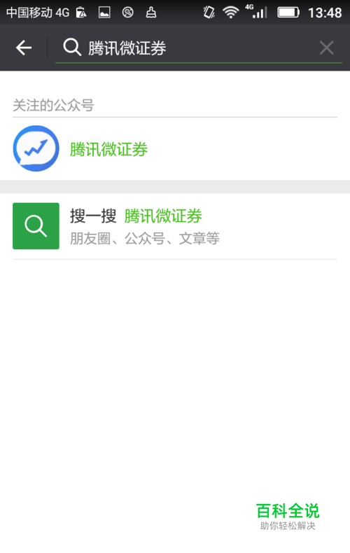 打开我们的微信,在搜索栏中搜索“腾讯微证券”。