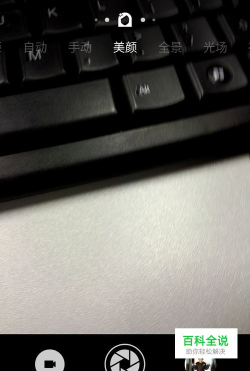 手指头(大拇指)移动到屏幕最上方中间离边款0.5cm , 手指头右划(或者左划),这时候会出现多种选择的图标,同时美颜字眼也会出现(见下图)。