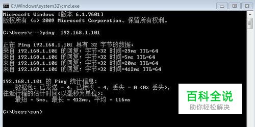 在打开的界面输入 ping+ip地址(注意ping后面有空格),此步骤为确认两台电脑可以互通