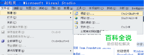 启动VS2010,在菜单中,点击文件 -> 新建 -> 项目