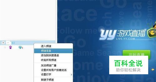 进入频道之后,我们在左侧单击右键,如图所示,在下拉的选项里单击“频道信息”按钮。