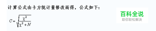 列联系数(Contingency coefficient):常用于名义变量之间的相关系数计算。公式:见下图。
