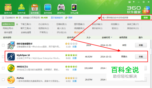 在卸载页面,最近安装中找到Myeclipse10,或者直接搜索Myeclipse10.