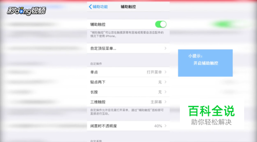点击“辅助触控”,打开辅助触控右侧的开关。