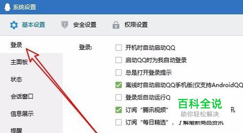 这时就会打开QQ软件的系统设置窗口,在窗口中我们点击左侧边栏的“登录”菜单项。