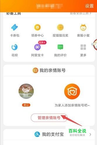 在我的淘宝页面中间位置会有一个我的亲情账号。