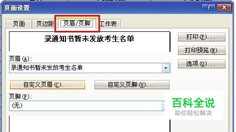 操作:“文件”→“页面设置”打开页面设置选项卡,然后打开“页眉/页脚”选项卡。(Office Excel 2010版本在“插入”→“页眉和页脚”处打开)