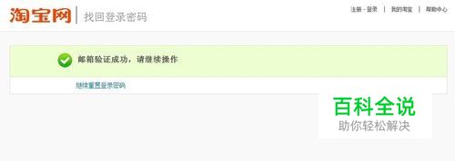 然后,会进入到对应的页面,提示“邮箱验证成功,请继续操作”,这个时候就可以点击“继续重置登录密码”,输入重置的密码,点击“确定”。
