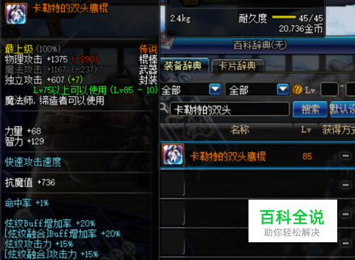 首先是武器 武器首选卡勒特的双头鹰棍,一共加了15%的攻击力,不过按照乘算,30级的流风决加将近100%的攻击,如果堆到30,也是将近加算的15%,相当不错的。
