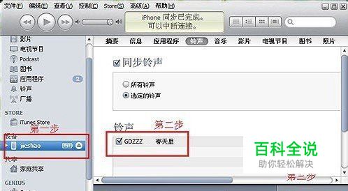 4、同步完成之后,我们进入iPhone手机,然后进入设置-找到声音文件夹,之后就可以看到我们同步进去的铃声了,再去设置成为铃声就有用了。