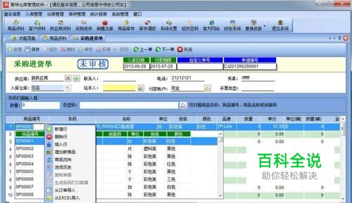 建立好基础资料之后就是操作入库,易特软件在操作入库上面是用采购进货单