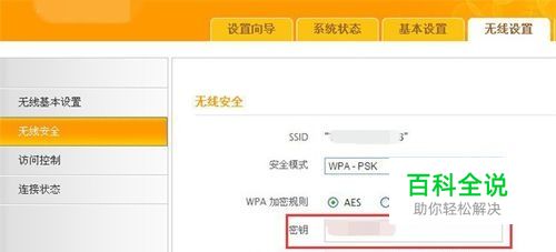 点击无线设置下的无线安全,这里包含无线账户名、加密方式、密钥等;