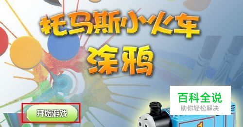 从游戏界面中可以看到,托马斯小火车的画还处于原始状态,你需要根据想象用画笔沾上底部的颜料为小火车上色。