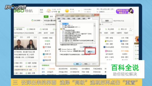 在弹出来的界面选择“高级”选项后再点击“重置”。
