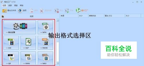 打开软件,在输出格式选择区,选择想要的视频格式。