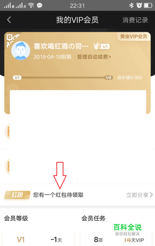 点击我的vip会员,这里有个分享红包拿vip的提醒,进入到我的VIP会员页面,如图