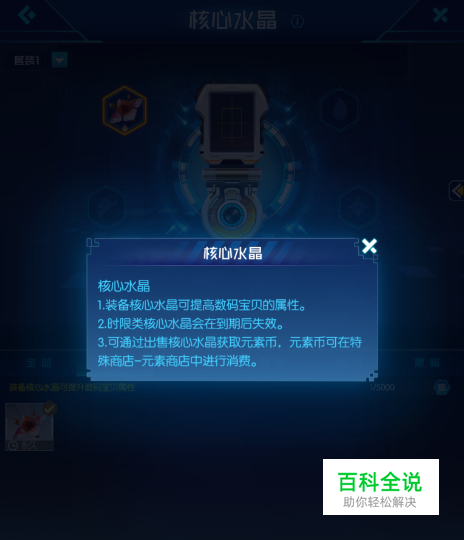 下图是游戏中关于【核心水晶】的一些说明,上面提示玩家可以通过装备核心水晶来提升数码宝贝的属性。