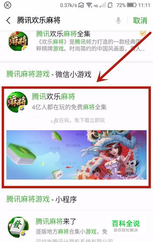 在手机微信里面搜索一下“腾讯欢乐麻将”并点击下这个小程序