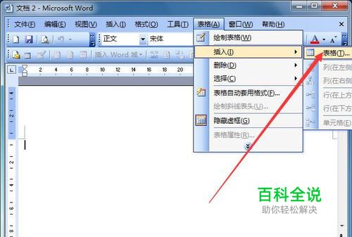 打开word,依次单击“表格”--“插入”--“表格…”。