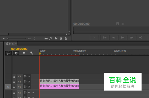在项目面板中找到新建的那个字幕,然后拖到第三个轨道上。
