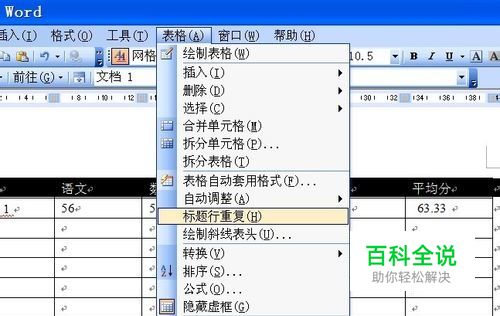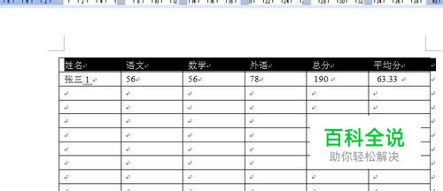 打开一个word表格,选中要每页显示的表头,如下图 所示;我们希望每页都能够显示姓名学科,总分平均分等信息;